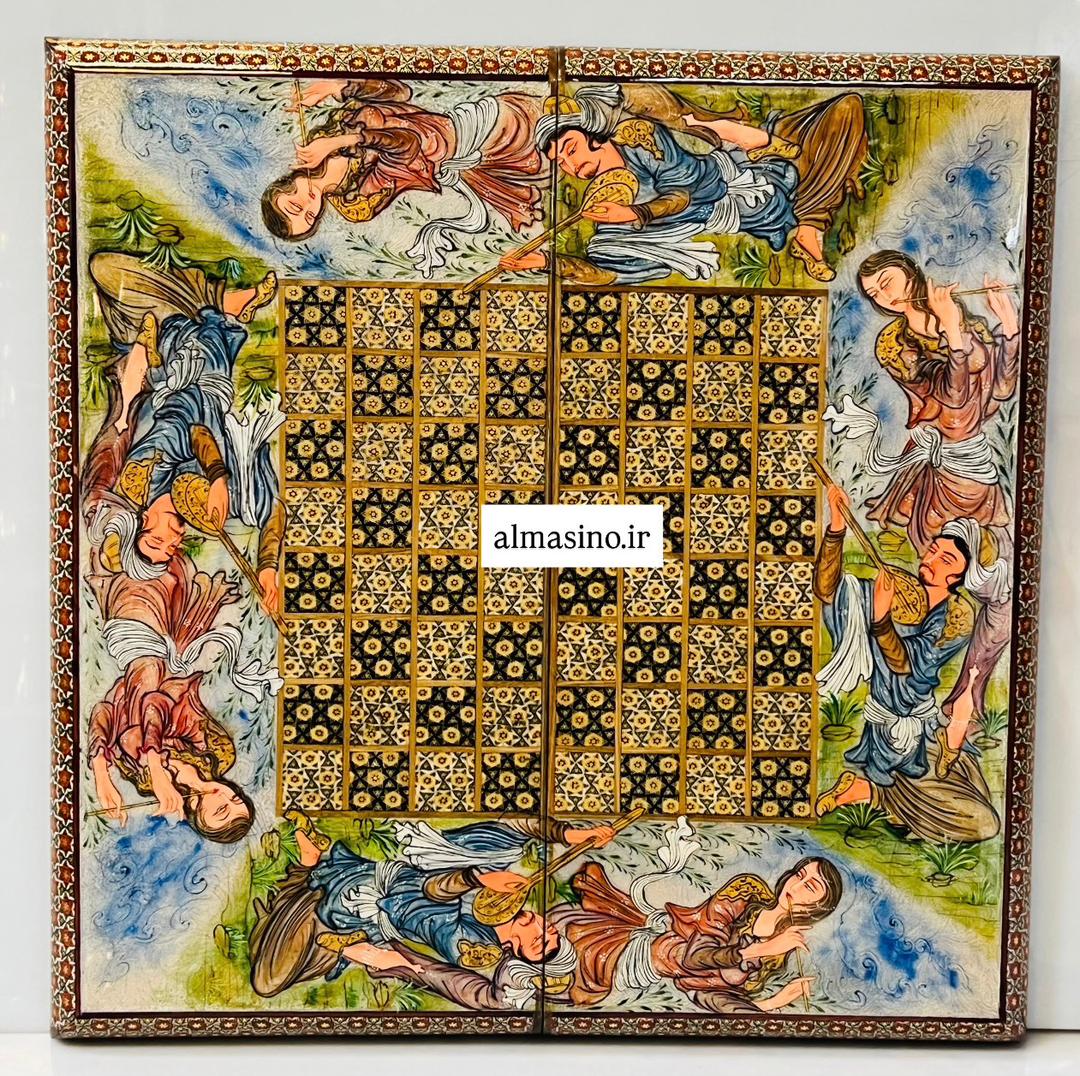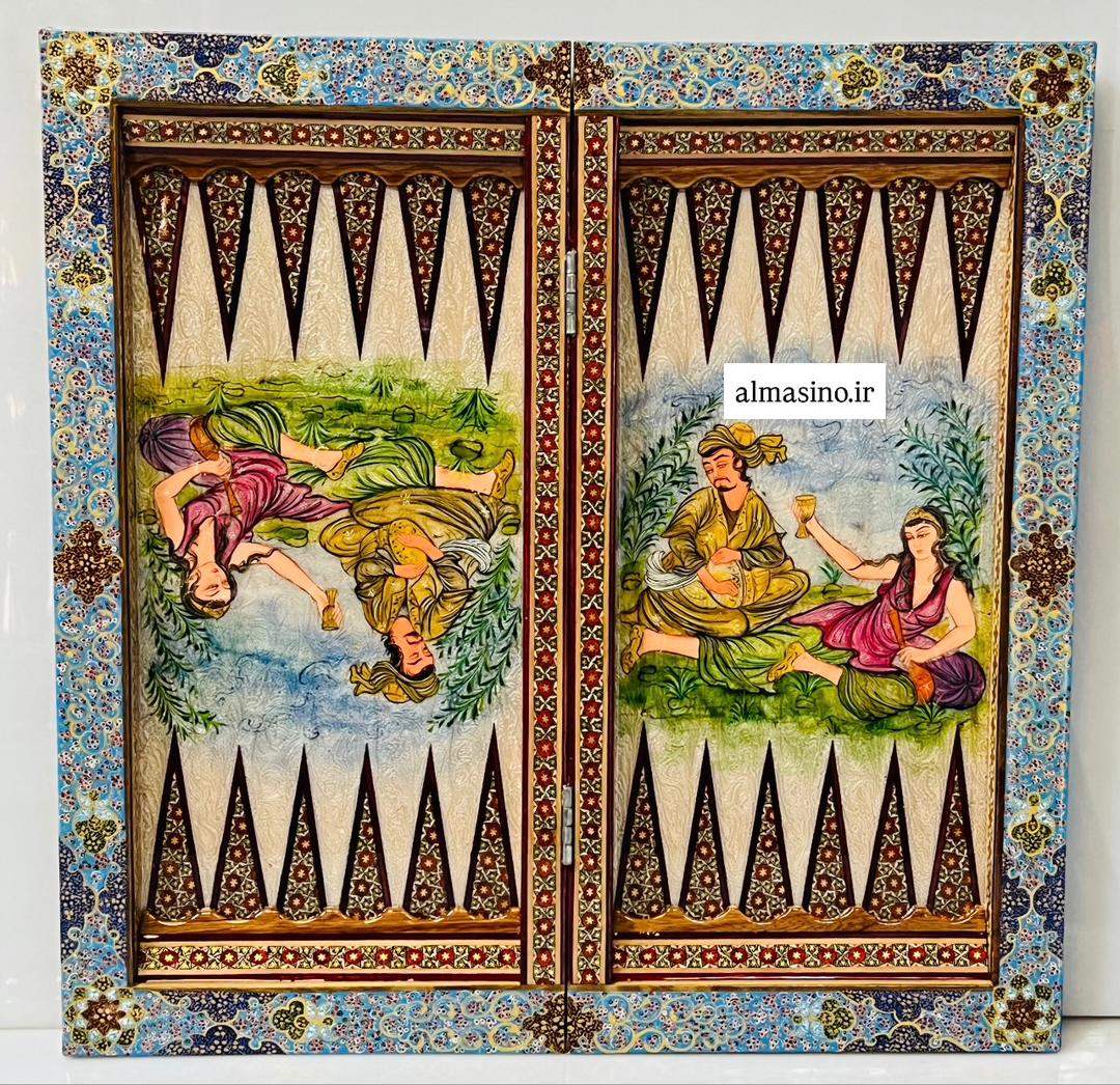 تخته نرد دالبردی خاتم ونقاشی طرح بزم داخل صدف اعلا
