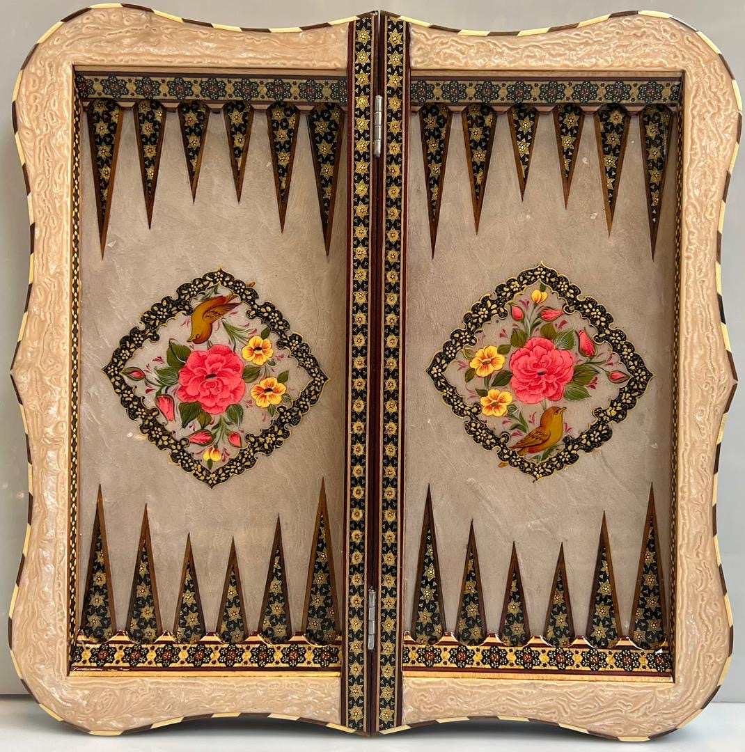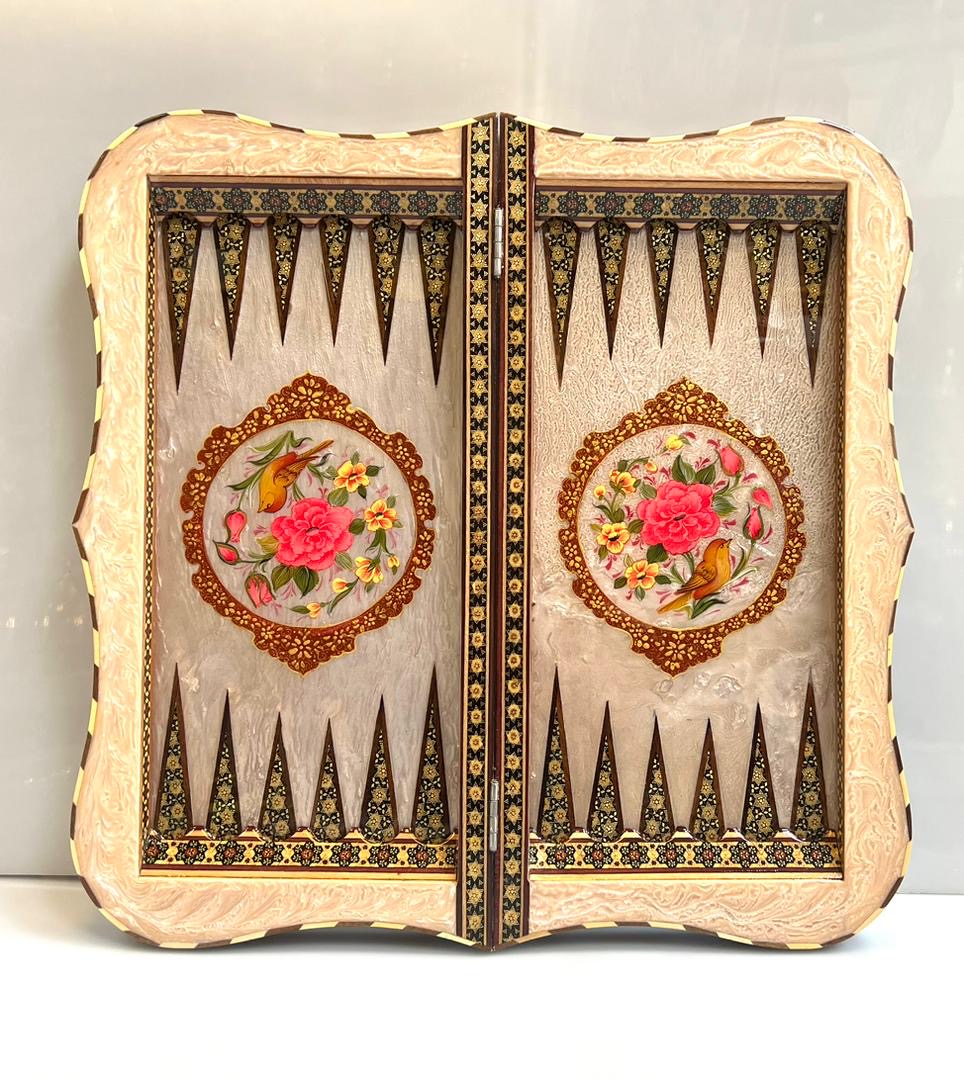 تخته نرد 50 سانتی خاتم و نقاشی گل و مرغ اعلا