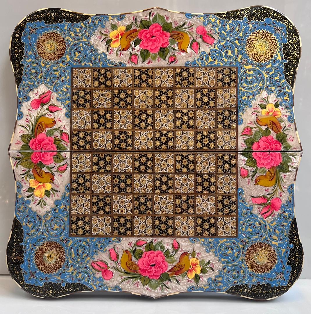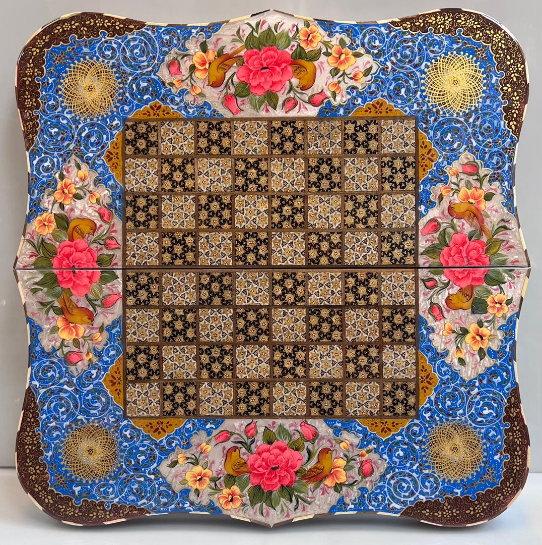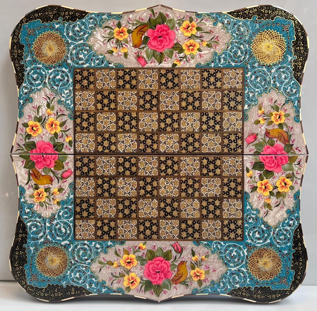 تخته نرد دالبردی خاتم و نقاشی گل مرغ اعلا سایز 50 در 50 سانت