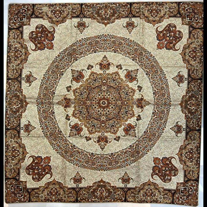 ترمه ابریشم مربع یک در یک اعلا رنگ کرم قهوه ای کار بسیار زیبا و خاص