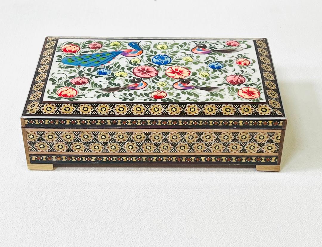 جعبه جا جواهری خاتم و گل مرغ