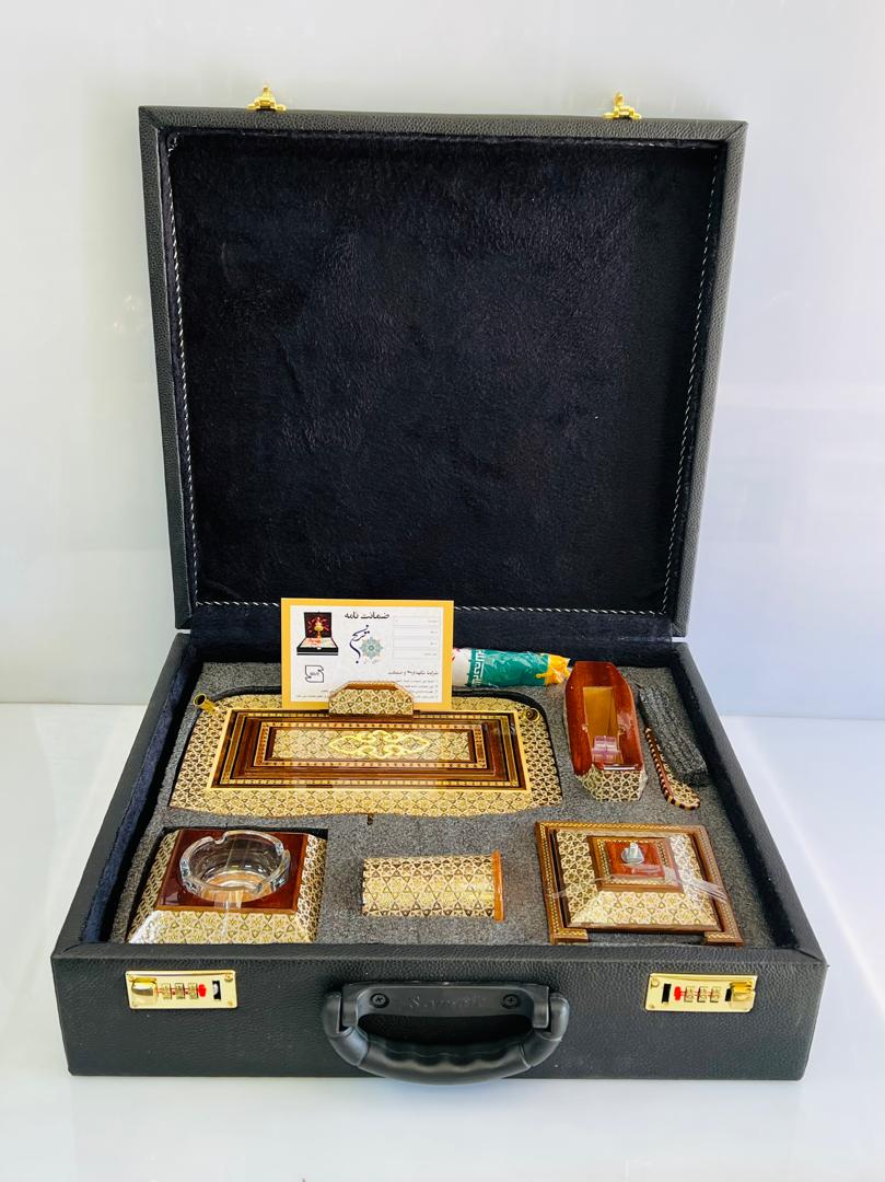 ست اداری خاتم اعلا هشت تیکه با کیف سامسونت چرم رمز دار مناسب هدیه مدیریتی