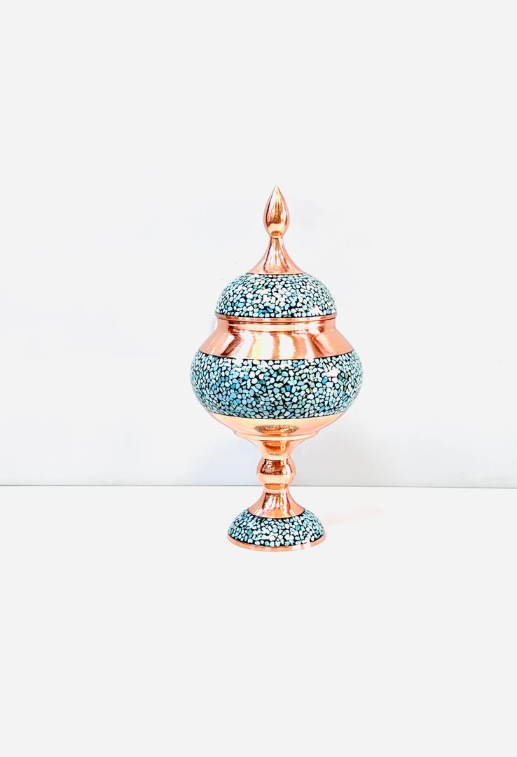 شکلاتخوری پایه دار فیروزه کاری ارتفاع ۲۰ سانتی کیفیت کار درجه یک با ضمانت کالا ده ساله