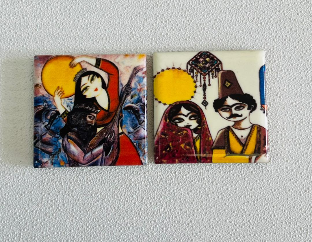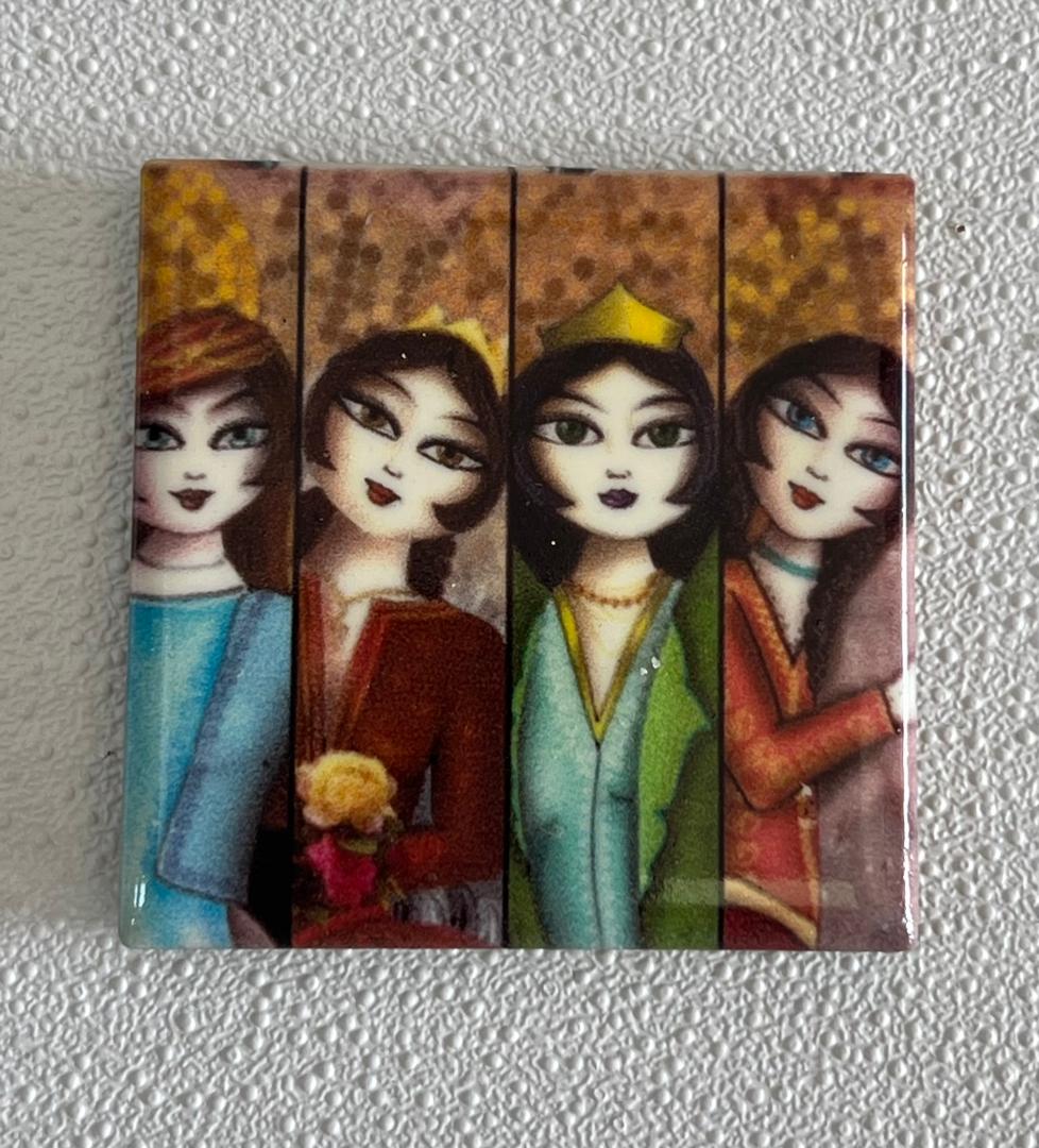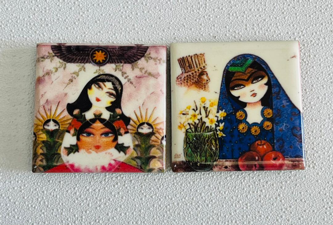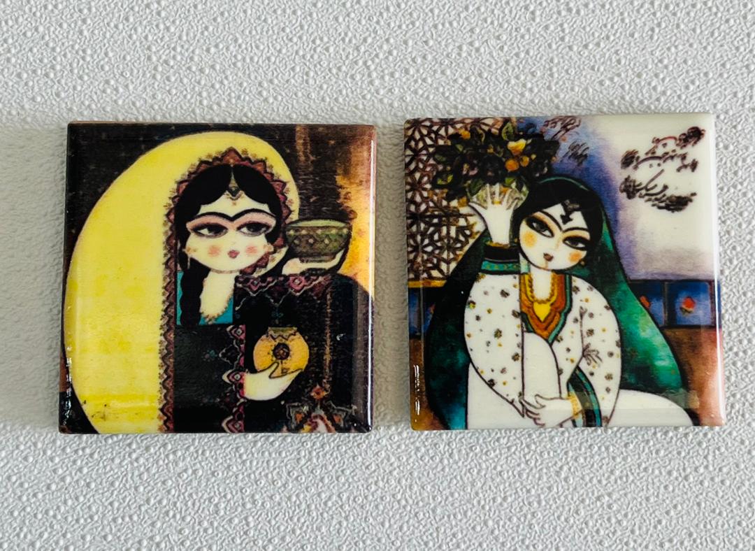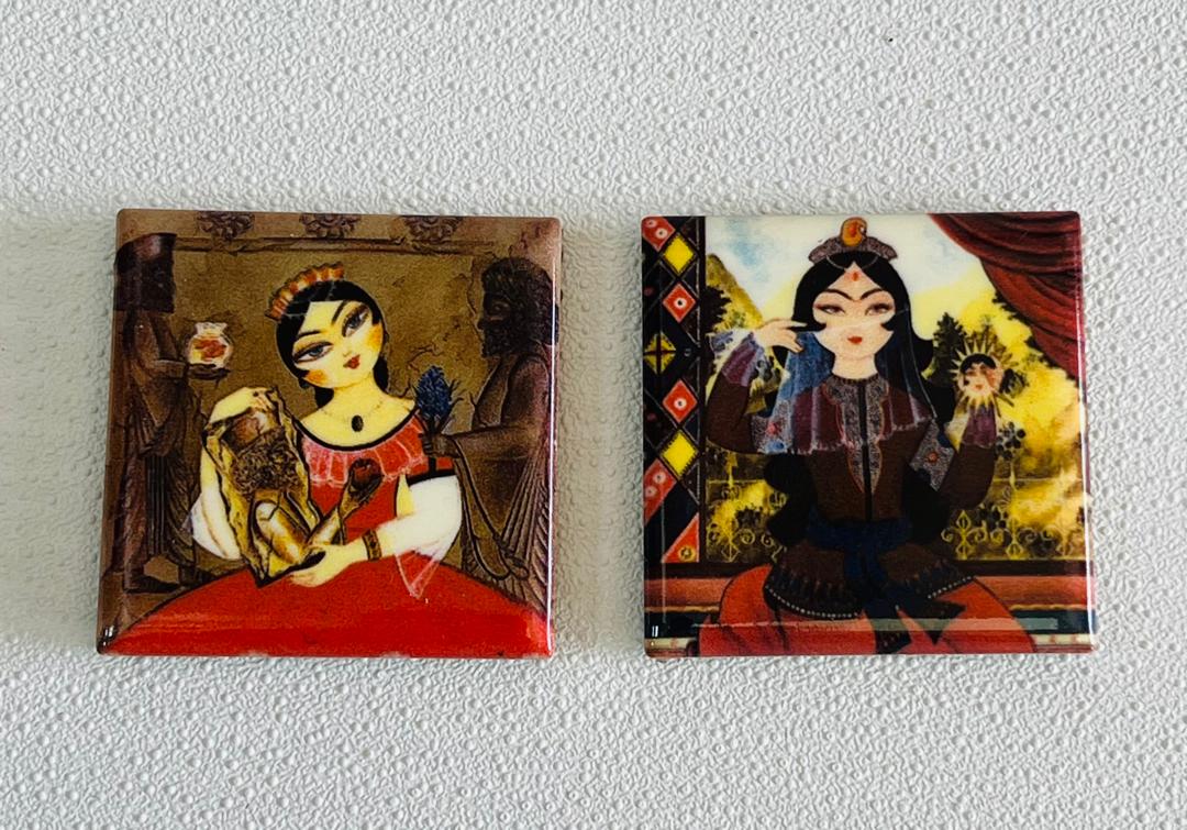 مگنت کاشی طرح خاتون های قاجاری سایز ۵ در ۵ مناسب برای رو یخچال کار جذاب و شیک مناسب هدیه و سوغاتی