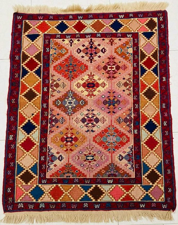 گلیم دست بافت زرچارک تمام کرک مغان نقشه قاب لوزی بسیار خوشگل و رنگ گیاهی بافت سوزنی کیفیت درجه یک